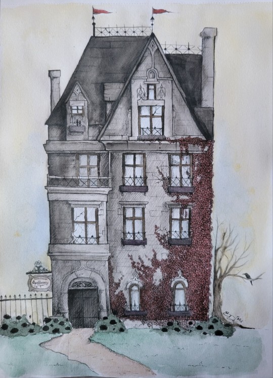 Entering the village of Barovia, we see houses with smashed glass and burn marks. We hear a rattling sound to our left. Someone is standing behind a window, but disappears. Two children (brother & sister?) cross our path. They say that in their house, there is a monster, and that their parents are still inside. On the door we see claw marks (like from a wolf, but larger paws).